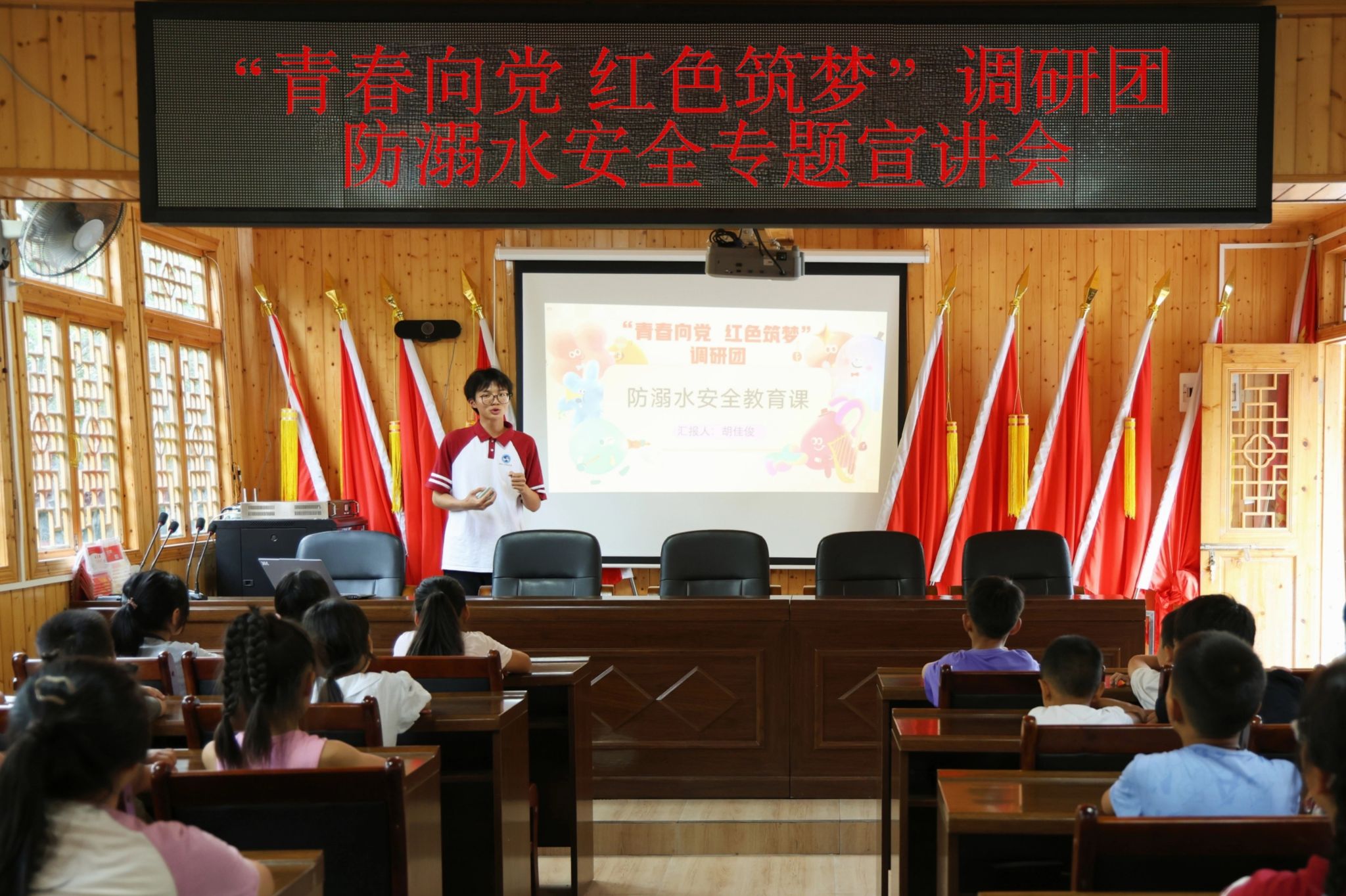 活动上,调研团成员结合驻村期间对当地水域环境的观察,聚焦上团村水域特点,深入浅出地讲解了溺水的常见原因及危险性。他们巧妙运用图片、视频等多媒体形式,帮助孩子们理解防溺水知识要点;并通过创设多元化的情境,引导孩子们识别生活中潜在的安全风险,让安全知识入脑入心。在互动环节,面对成员们的提问,孩子们踊跃发言,积极分享所学所得。罗丝琪小朋友认真地说道:“我以后游泳一定会加倍小心,溺水太可怕了!”