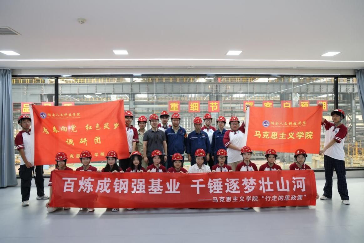 7月15日,“青春向党 红色筑梦”调研团在湖南省“七彩假期”志愿服务项目的支持下,由指导老师李婉溶、周浩带队,走进湖南华菱涟钢特种新材料有限公司开展实地调研,探寻涟钢在产业链协同中的“产业报国、工业强国”实践。