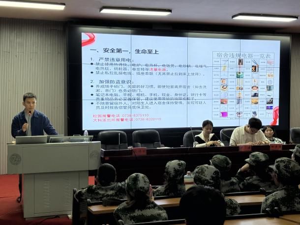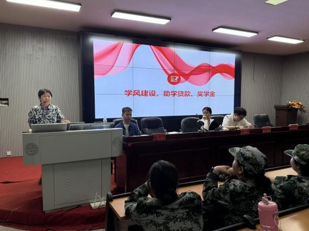 会议最后,辅导员段洋明讲解宿舍规章。他指出宿舍是集体生活的重要场所,规章是保障生活质量的准则,鼓励新生互相监督、共同遵守,维护整洁、安全、和谐的住宿环境。辅导员段琦璐围绕学风建设和助学贷款开展专题讲话。她强调课堂专注和按时完成学业任务的重要性,鼓励新生参与学术讲座和学习小组。针对助学贷款,她说明申请条件、办理流程及还款要求,让经济困难新生安心入学。