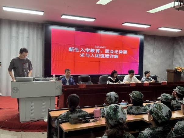 辅导员邹凌云围绕团学知识宣讲,针对新生关心的入团问题,拆解入团基本条件与规范流程,点燃学子向团组织靠拢的热情。辅导员柳泽伟聚焦入党知识与理想信念教育,为有入党意愿的新生指引方向。他详细介绍大学生入党条件、申请流程、培养考察要求,鼓励同学们专业学习争先锋,在志愿服务和集体活动中展现担当。
