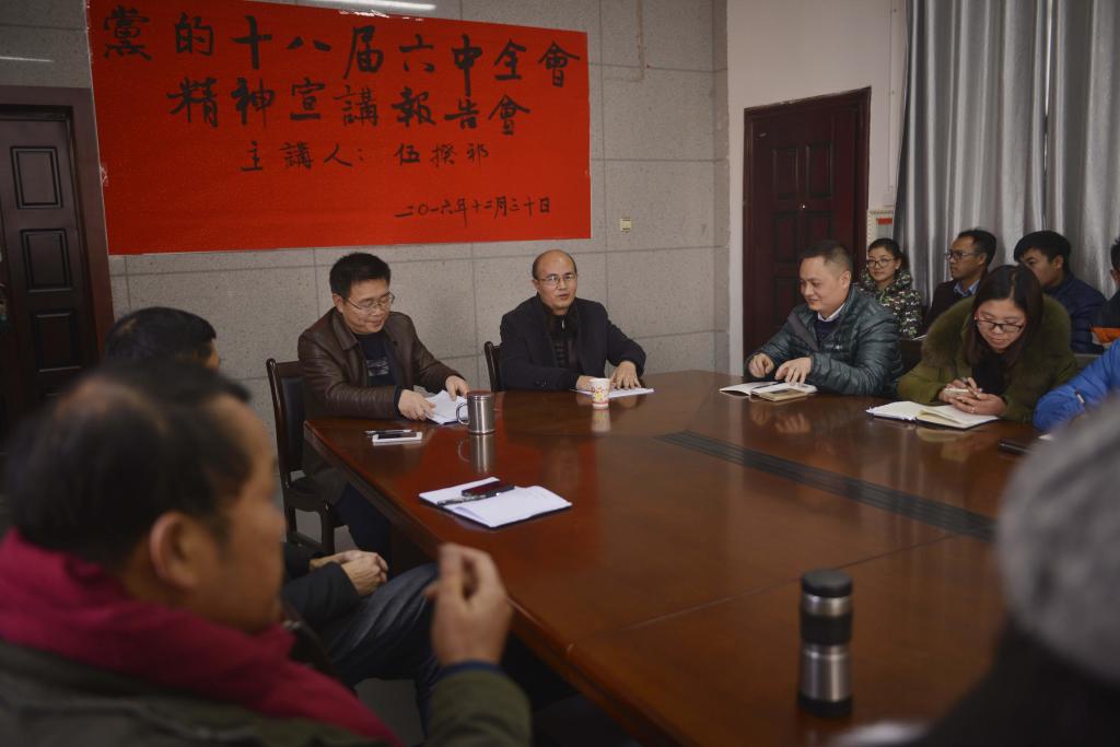 伍揆祁部长从深刻认识六中全会的重大意义,全面加强和规范党内政治生活、强化党内监督、加强制度保障,认真贯彻六中全会精神的基本要求等五个方面,对十八届六中全会精神进行了全面深入地解读。
