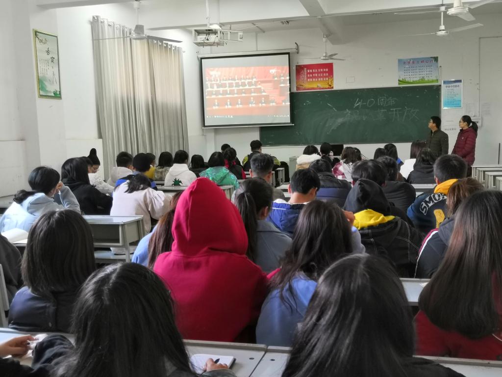 庆祝改革开放40周年大会18日上午10时在人民大会堂举行。 学院组织全体师生观看庆祝改革开放40周年大会直播。