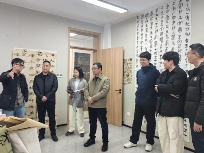 2025年11月29日下午,美术与设计学院党总支书记阳立新,书法教研室主任李国清、学工办主任姚婧一行赴绍兴职业技术学院考察交流。此次活动先后考察了绍兴职院美育中心、书法专业展览馆、教室与实训教室并于该校图书馆会议室开展了书法专业建设座谈会。