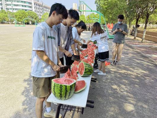 随后,领导和老师们给全院新生和带队教官分发了消暑解渴的西瓜,吃着可口的西瓜,同学们深深感受到了学院的关怀与祝福,脸上洋溢着幸福和甜蜜。