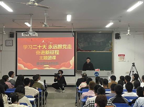 为进一步学习宣传贯彻党的二十大精神,引导广大师生切实把思想和行动统一到二十大精神上来,11月2日晚上,校长刘铁铭教授在致远楼211教室为美术与设计学院和材料与环境工程学院的同学们开展了“学习二十大,永远跟党走,奋进新征程”主题团课,美术与设计学院和材料与环境工程学院的副书记、辅导员共同聆听了此次团课。