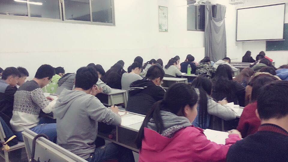 在考场上,有的同学冥思苦想,有的同学奋笔疾书。但从他们严肃的表情中可以看出,我系的学生对这次团课结业考试十分重视。在这里,预祝他们能够顺利结业,能在党的领导下,发光发热! (李笠雯 供稿)