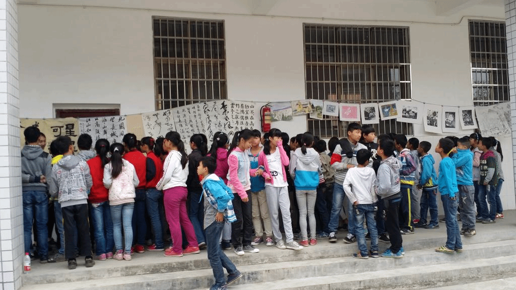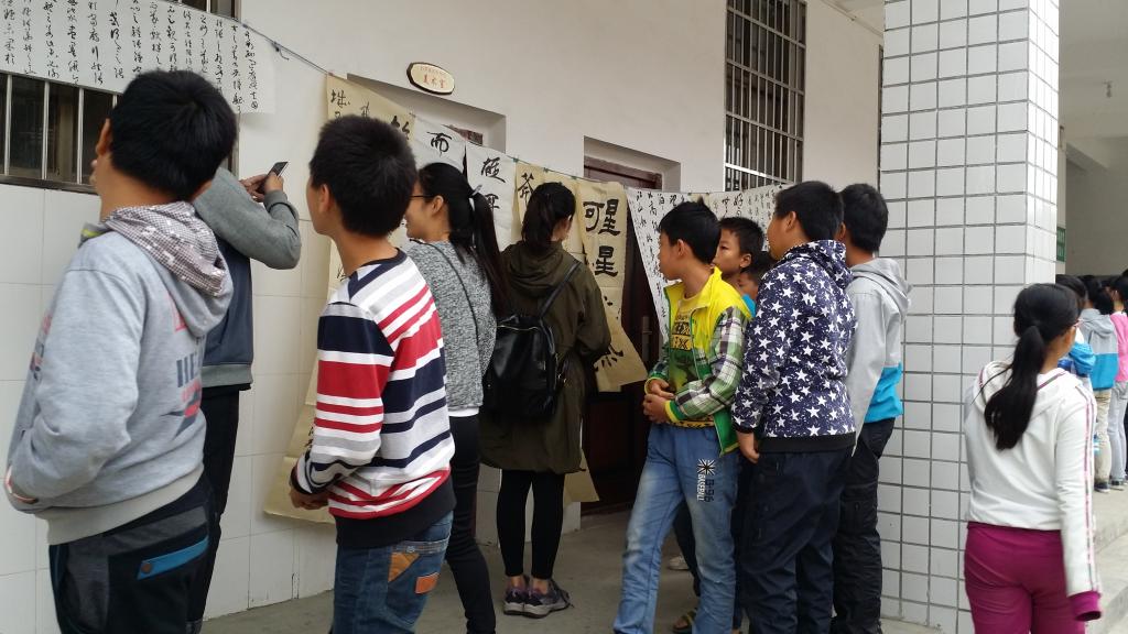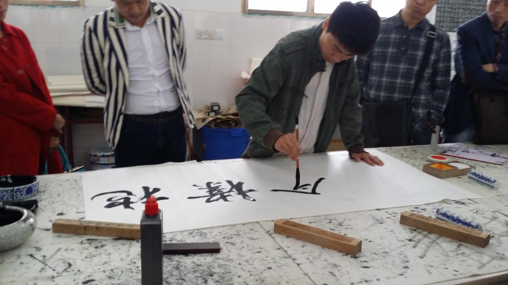 此次“文化下乡”活动展演的作品由美术系学生党员精心创作而成,含国画、书法、水彩、版画等多个种类。石井中学周新平副校长安排专人组织学校师生观赏展演作品,我系学生党员主动上前为石井中学的学生讲解作品和创作基础知识。此次展览受到石井中学师生的欢迎和喜爱。书法课上,由易俊、肖敦兵、蒋传存、钟瀮汐以及蒋全顺等老师现场即兴创作,为石井中学留下了“桃李满园”、“文以载道,书以焕彩”等书法题词。之后,易俊、蒋传存老师和石井中学有书法爱好的同学一起进行书法的讨论,并亲自示范与指点,解决同学们的疑难问题。