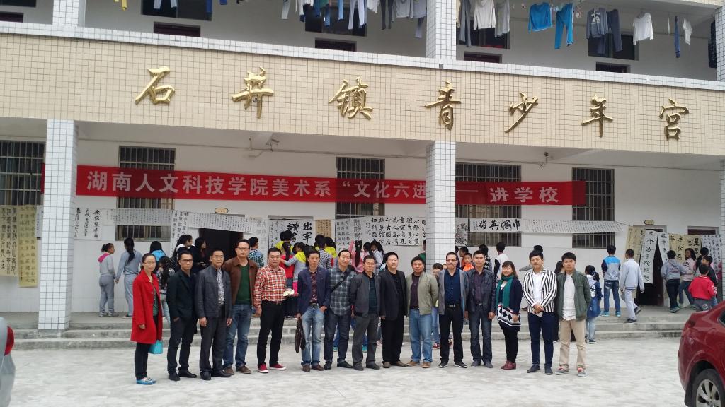 2015年10月29日,在美术系党总支书记李小林、系主任邹少林带领下,副主任陆序彦、谢雅强,书法教研室主任兼支部书记易俊,党总支组织委员李兰、宣传委员彭建成、青年委员刘风雪,学生党支部书记张晶露,书法学教研室骨干教师肖敦兵、蒋传存、钟霖汐、蒋全顺及部分学生党员代表来到石井中学开展美术系党总支(党支部)“文化六进之走进学校”活动。