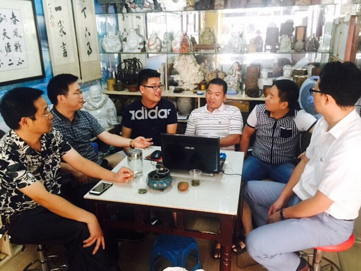 7月8日上午9:00,美术系2012级、2013级书法学专业学生在李小林书记、彭建成老师和刘风雪老师的带领下,考察了娄底市古玩市场。