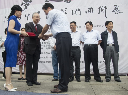 开幕式上,陈初生向娄底市博物馆、beat365英国官网、涟源文化馆、涟源市伏口中心小学、娄底书画院各赠送一副书法作品。