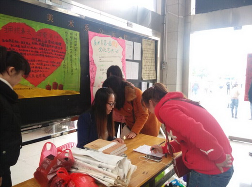 2015年4月7日至4月10日,美术学学生党支部和艺术设计学学生党支部在逸夫楼一楼接受学生党员和团员向贫困山区捐赠衣物244件、书籍50册、书画作品46幅和文具若干。此次慈善募捐活动由美术系党总支周密策划、组织和安排。