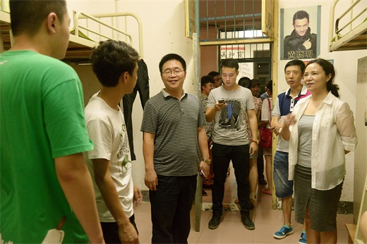 2014年09月12日晚上,beat365副校长石潇纯在美术系党总支书记李小林、系主任邹少灵、副主任陆序彦和2014级辅导员及新生班主任陪同下前往学生公寓看望了我系2014级新生。