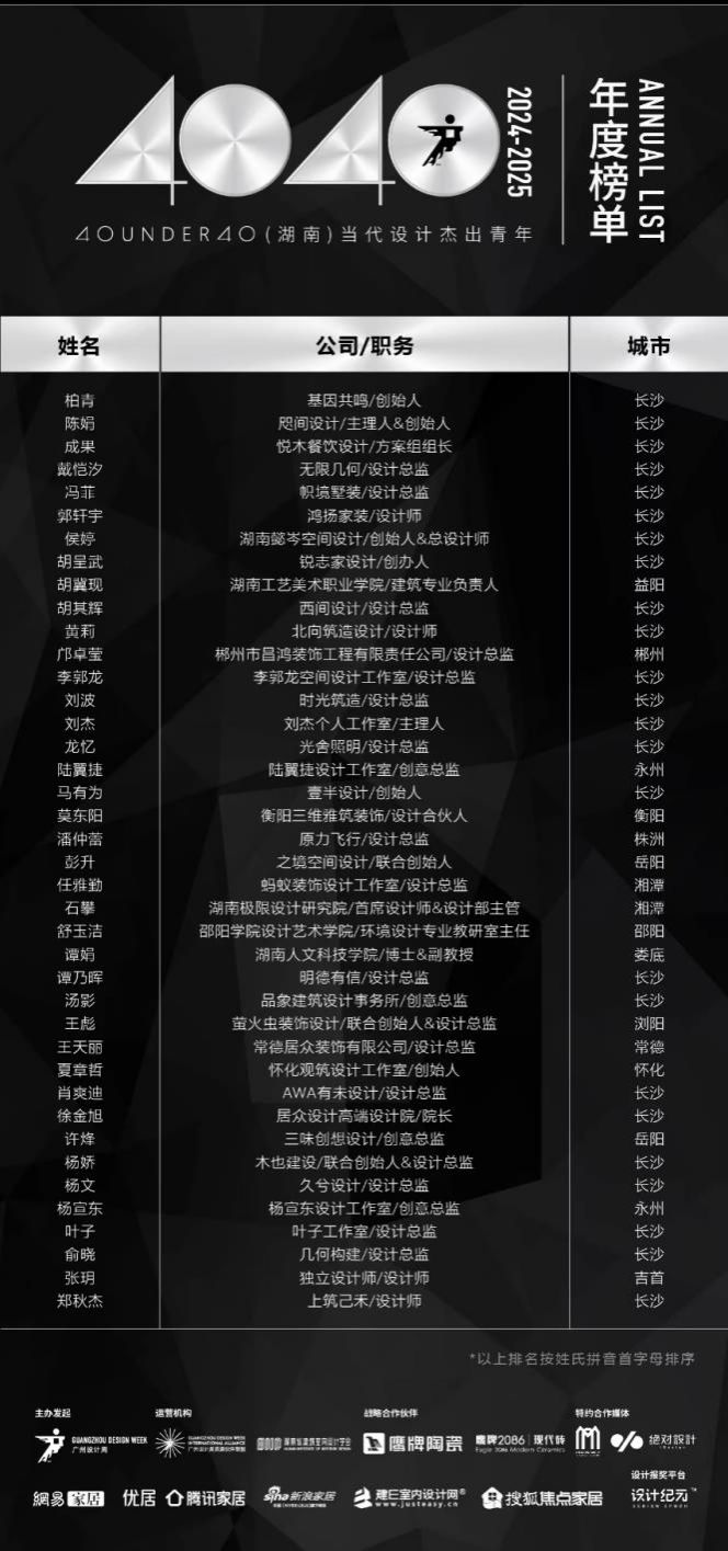 2024年湖南省40 UNDER 40当代设计杰出青年的榜单