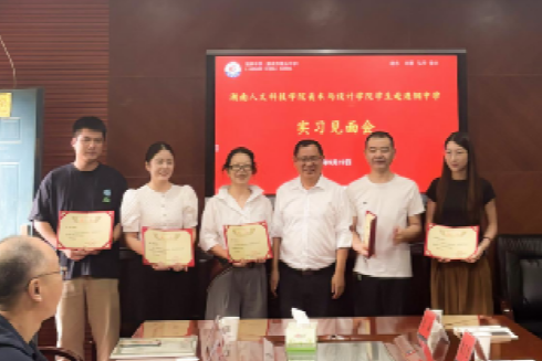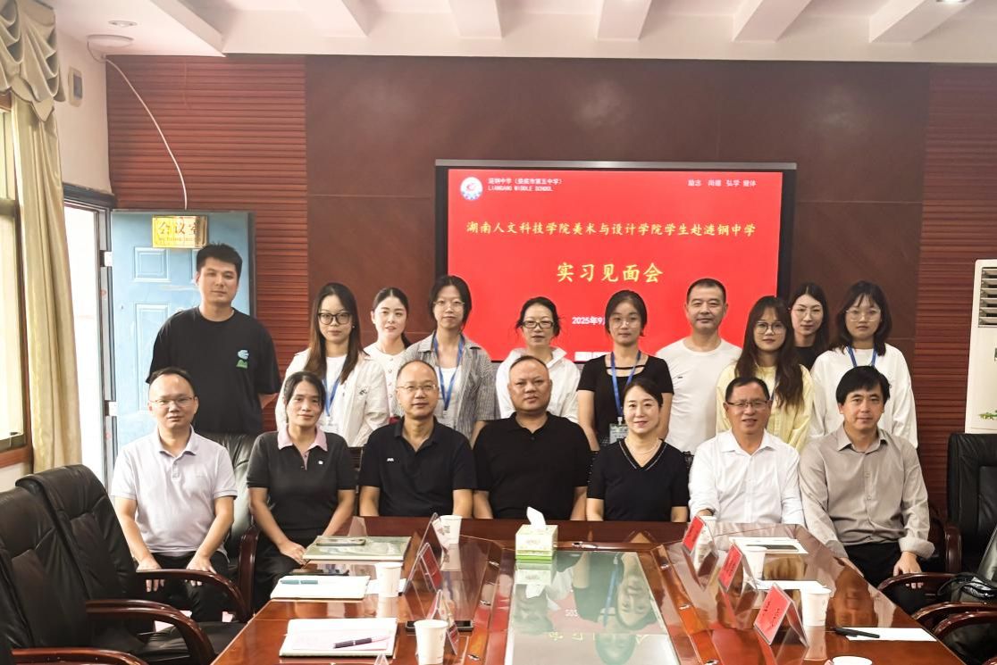 9月19日,娄底市第五中学为美术学专业2022级实习小队召开实习生见面会。娄底市第五中学工会主席、初中部分管领导蔡峻,副校长、高中部分管领导谢红卫,高中教务科科长唐世敏,初中教务科科长谢伟民,教研科科长方强,艺术教研组副组长姚佳,实习指导老师聂庆红、杨山梅、赵曦、曾雪宜,beat365英国官网教务处实践科科长刘槐德,实习带队教师彭波以及实习生共同出席。