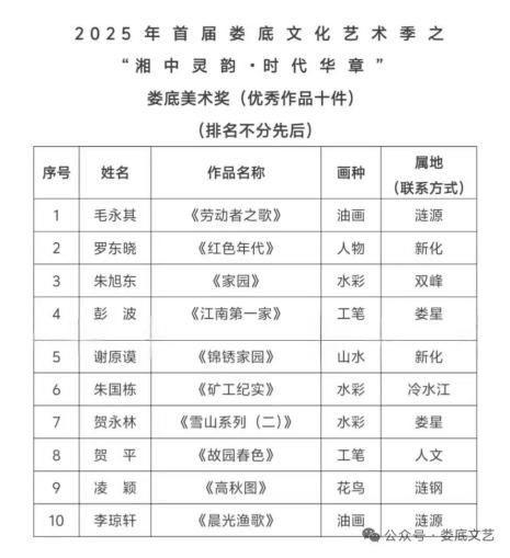 表彰环节中,我院教师贺平、彭波获评娄底美术奖优秀奖;书法学教师袁微及学生陈建民、张晨缘获书法篆刻奖优秀奖,学生孙子涵作品入围提名奖,尽显青年学子艺术灵气与发展潜力。