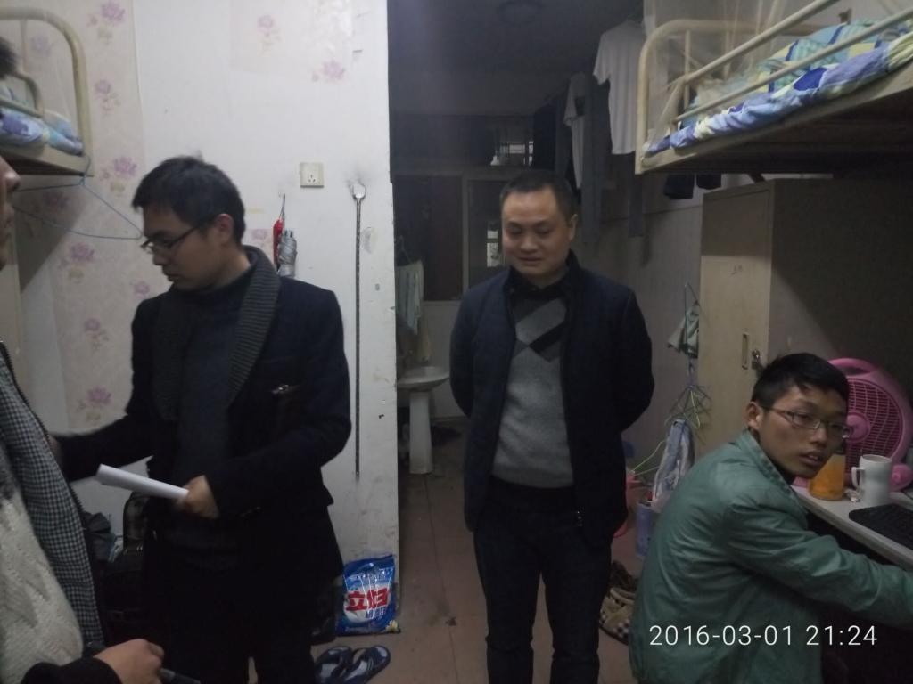 为了进一步加强寝室安全卫生督导,提高同学们的安全防范意识,2016年3月1日晚上9点,美术与设计学院在党总支李小林书记带队,由王东光副书记、分管学生会陈天佑老师、各年级辅导员、班主任老师以及学生干部的陪同下,对阳光1栋、5栋、6栋等寝室进行了突击检查。