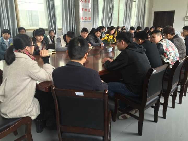 2016年3月23日上午,在逸夫楼会议室召开了本学期第一次团学例会。出席本次会议的有陈天佑老师、张晶露老师、学生会各部长以及团总支各部长。