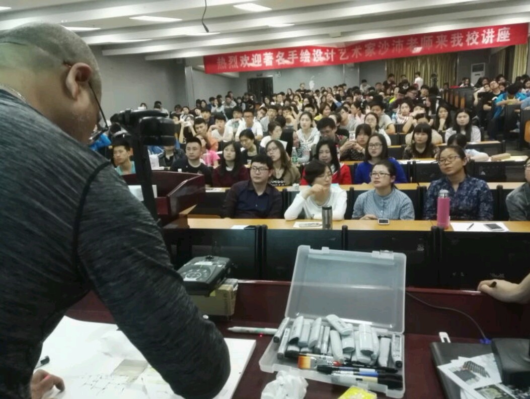 2016年4月21日晚,中国高级室内建筑师,国内顶级手绘表现专家沙沛老师做客beat365英国官网美术与设计学院,在一楼多媒体报告厅为环境设计专业师生做主题为“设绘主义——手绘与空间设计”的学术讲座。