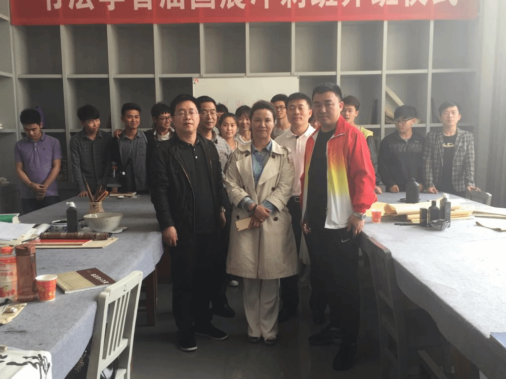 两位校领导到“书法学专业国展冲刺班”教室看望了正在刻苦创作的20名冲剌学生,他们对美术与设计学院在贯彻“转型发展、内涵发展、特色发展”的指导思想下组建“书法国展冲刺班”的做法表示充分肯定,对老师们在课外无私奉献、辅导学生创作精品的敬业精神表示敬佩。