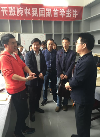 听取书法学负责人易俊对“书法学首届国展班”的开班目的和教研室建设情况后,副校长周发明一行考察了美术与设计学院书法学专业“国展冲刺班”。