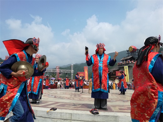 11日,来自韩国、甘肃、贵州和新化本土的6支傩戏代表队在新化大熊山国家森林公园蚩尤屋场“梅山九五大坛”进行了交流展演。展演会上,来自新化的傩戏《踩九州》、《扎六娘》、《土地送春牛》和《还都猖大愿》等经典梅山傩戏以其原生态的韵味赢得与会专家、学者的阵阵掌声,其丰富多彩的表演形式,粗犷夸张的动作,幽默诙谐的语言以及高亢亮丽又优美婉转的唱腔让他们真正体验到了自成体系的梅山傩戏的独特魅力。