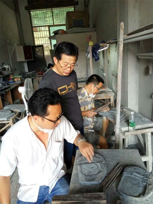 2016年7月19日,美术与设计学院院长邹少灵来到新化县文田砚工艺品有限公司的厂房,看望在那里挂职锻炼的刘风雪和彭建成两位教师。两位老师对邹院长汇报了近段时间的所学和感想,邹院长对两位教师一个星期来所取得的成绩进行了表扬,指出两位教师一定要掌握砚台雕刻的具体流程,把握石雕艺术的精髓,手上功夫可以慢慢锻炼,但理念一定要有;艺术是需要经年的积累的,不可能一蹴而就,要耐得住寂寞,同时对两位教师甘于吃苦的作风进行了鼓励和表扬。(刘风雪,2016年8月2日)
