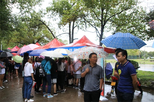 迎新第一天,大雨来袭,但这并不能阻挡工作人员和志愿者们的热情,他们不惧环境的艰辛,以最饱满的热情和最灿烂的笑容服务每一位新生,更是冒雨频繁往返于报到地点和新生宿舍之间,带领新生走完所有报到流程,并送到入住宿舍,一路上还热情、耐心地回答新生和家长们提出的各种问题。迎新工作人员热情、周到、安全、高效的服务,给新生和家长们留下了深刻的印象,并受到了他们高度赞扬与感谢。