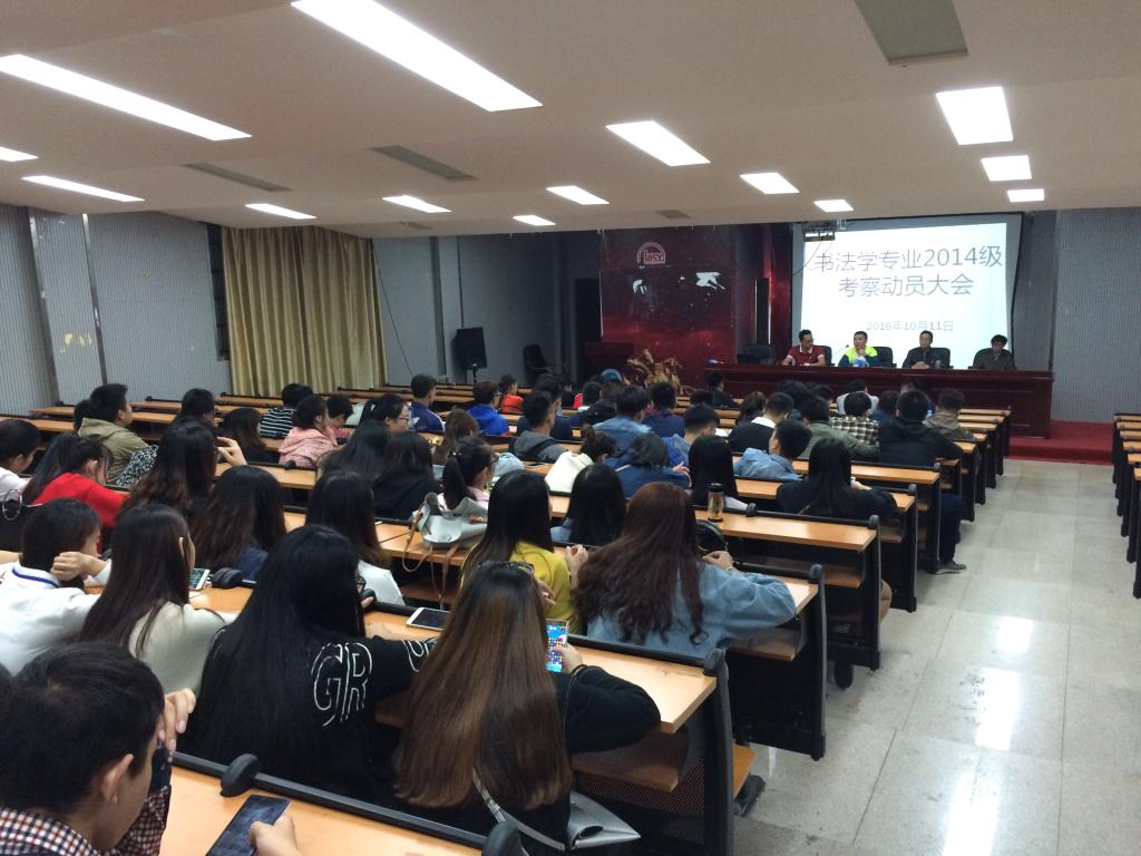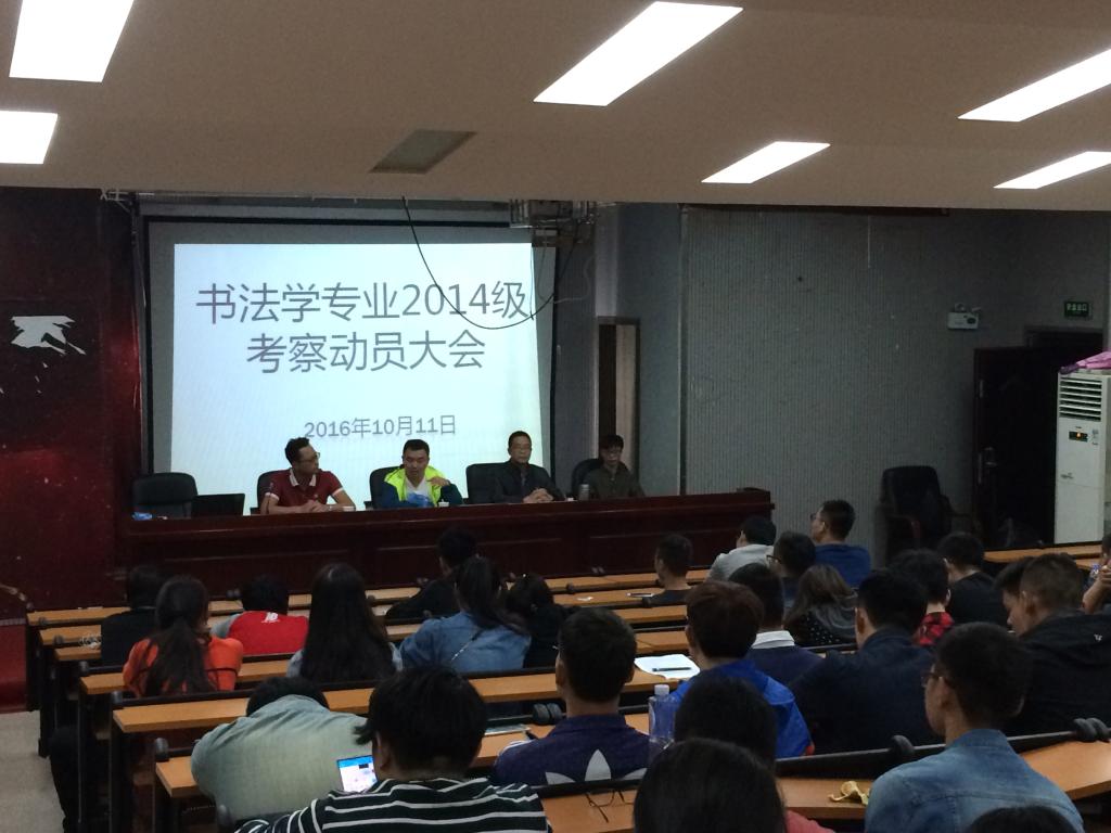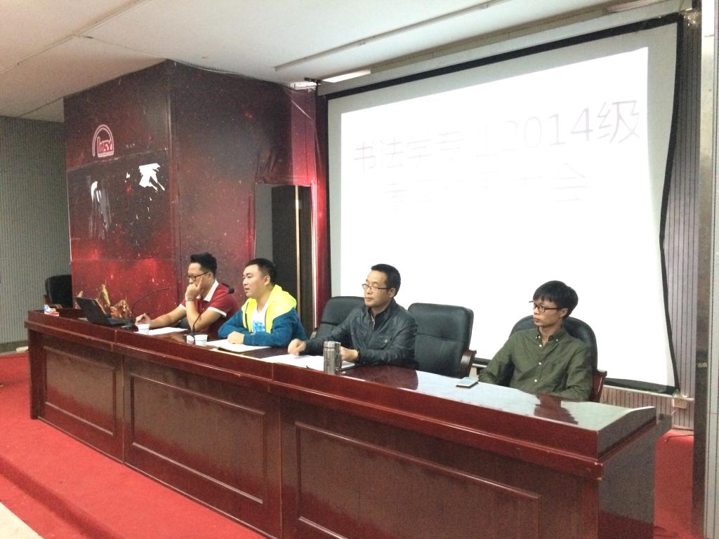 晚7点30分,书法学专业在美术与设计学院一楼多媒体报告厅召开了外出考察写生安全工作会议。教研室主任易俊,带队老师彭建成副教授、刘风雪博士、曾庆勋老师及14级全体书法学学生参加本次会议。会议由教研室主任易俊主持。