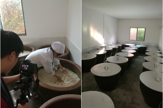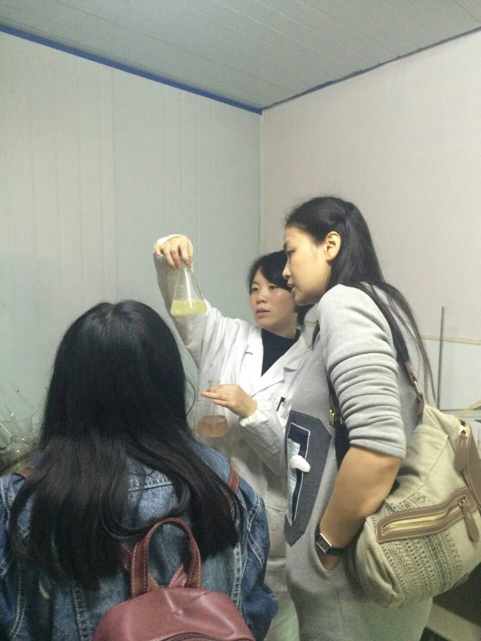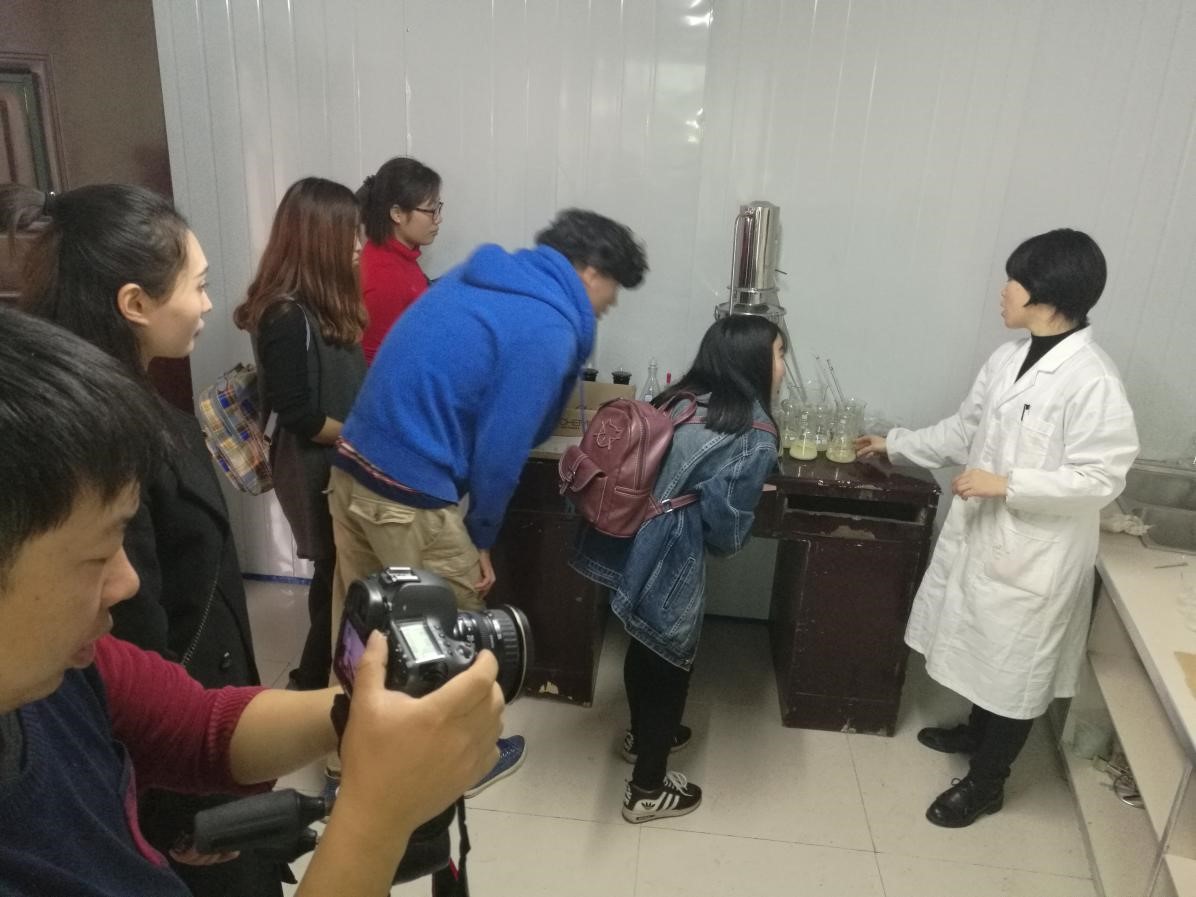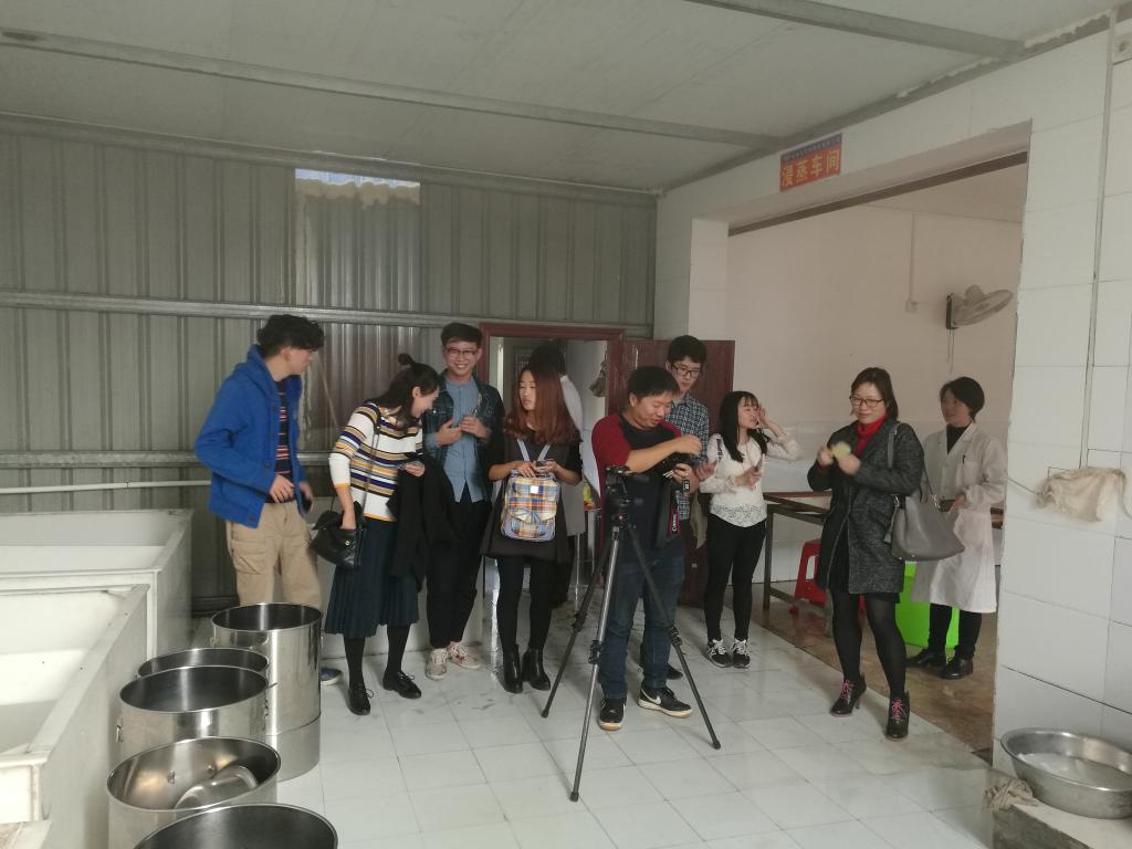农生院的肖荣博士全程陪同,给大家做了详细的解说,并带领大家参观了她的实验室,让大家观察了不同品种糯米经过发酵之后的不同状态。四个小时的考察过程,同学生们都认真的记录并拍照,收集了大量的资料,从糯米的蒸煮到发酵,到酿造和灌装等,学生们对整个酿酒的过程进行了全面且细致的了解。