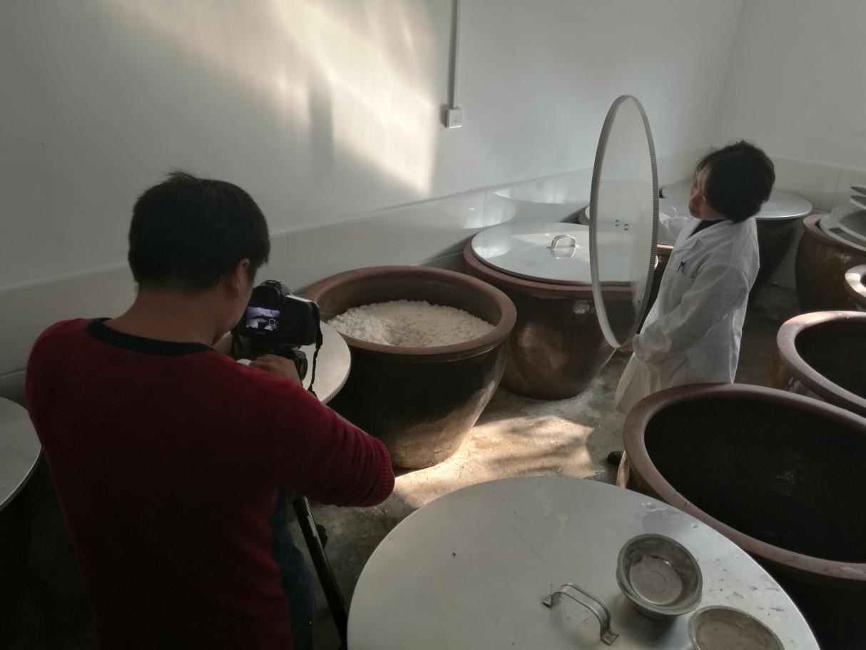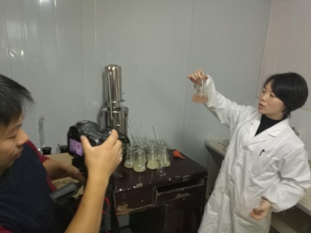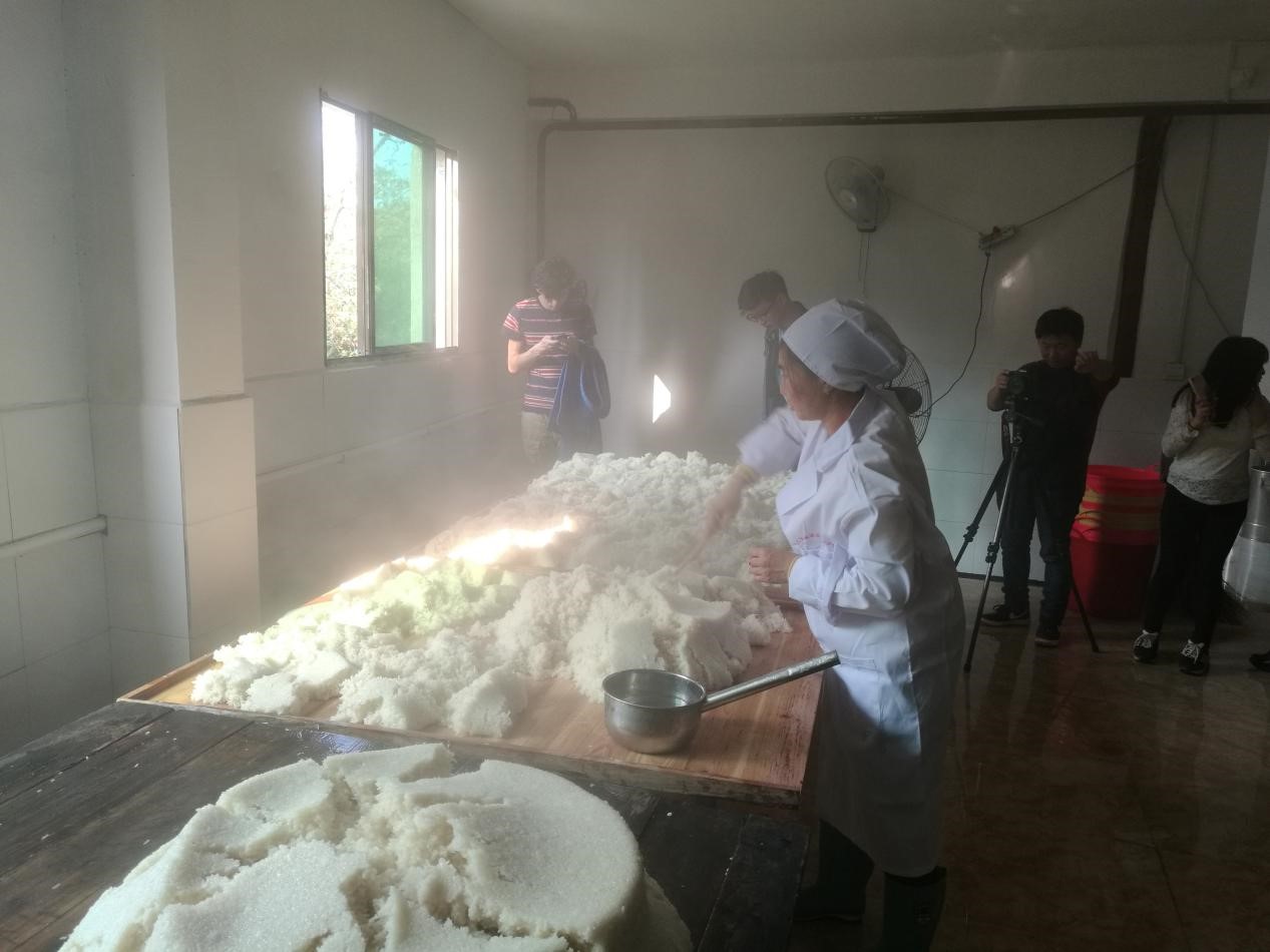 农生院的肖荣博士全程陪同,给大家做了详细的解说,并带领大家参观了她的实验室,让大家观察了不同品种糯米经过发酵之后的不同状态。四个小时的考察过程,同学生们都认真的记录并拍照,收集了大量的资料,从糯米的蒸煮到发酵,到酿造和灌装等,学生们对整个酿酒的过程进行了全面且细致的了解。