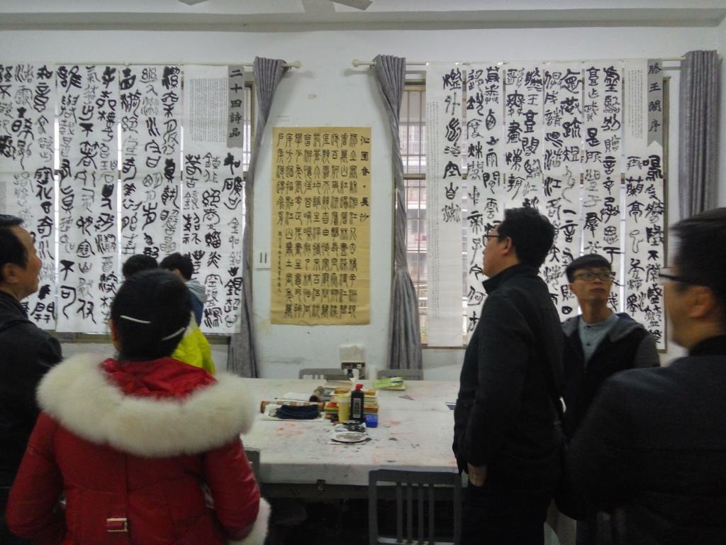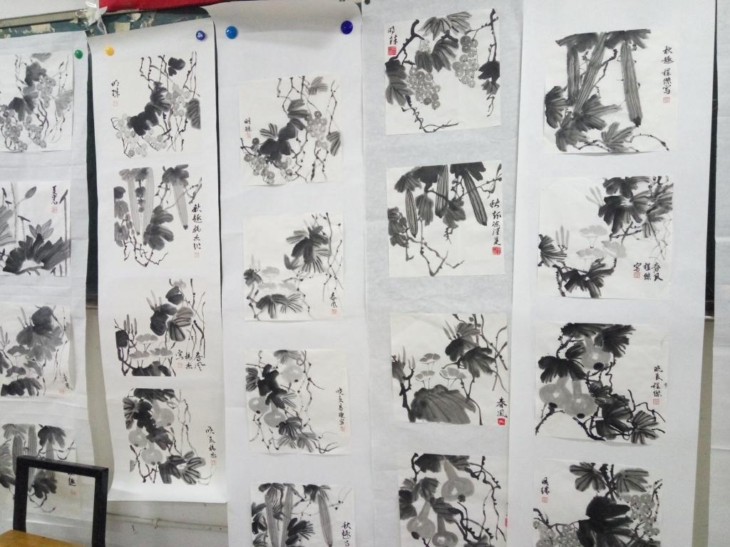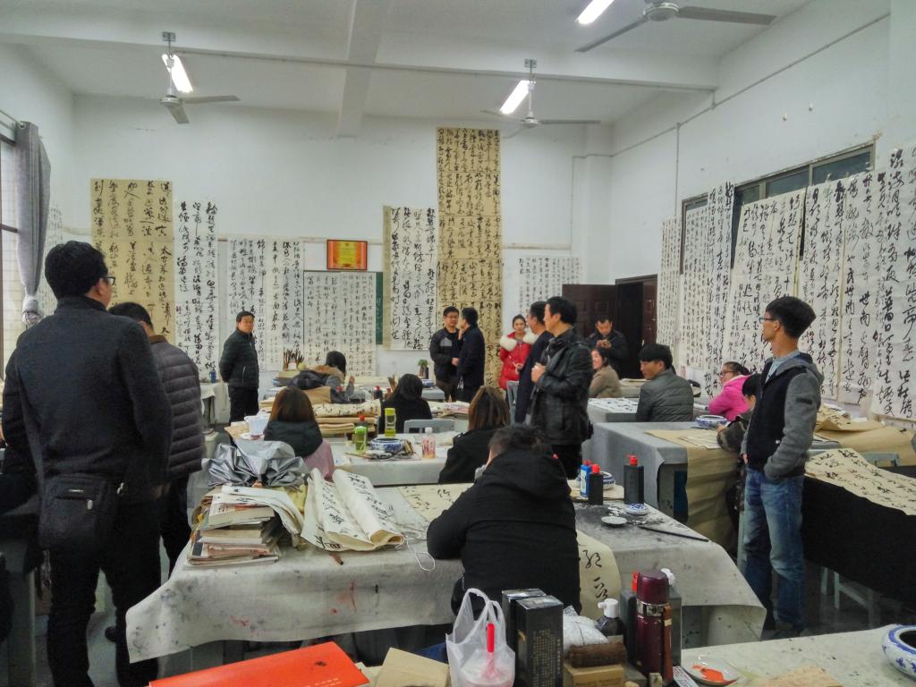 ,书法学专业有多门课程结业。在院长邹少灵、副院长谢雅强(主管教学工作)的带领下,点评了书法学专业从大一到大三共计12个班,三门课的结课作业。其中包括篆书创作、草书创作、花鸟画临摹三门课。书法技法课的授课结业蔚为壮观,差不多涵盖了所有专业教师的教学,而花鸟画临摹的授课教师阵容堪称“豪华版”,分别是院长邹少灵教授、副院长谢雅强副教授、老教授肖国崇、韩籍外教金万奎博士。