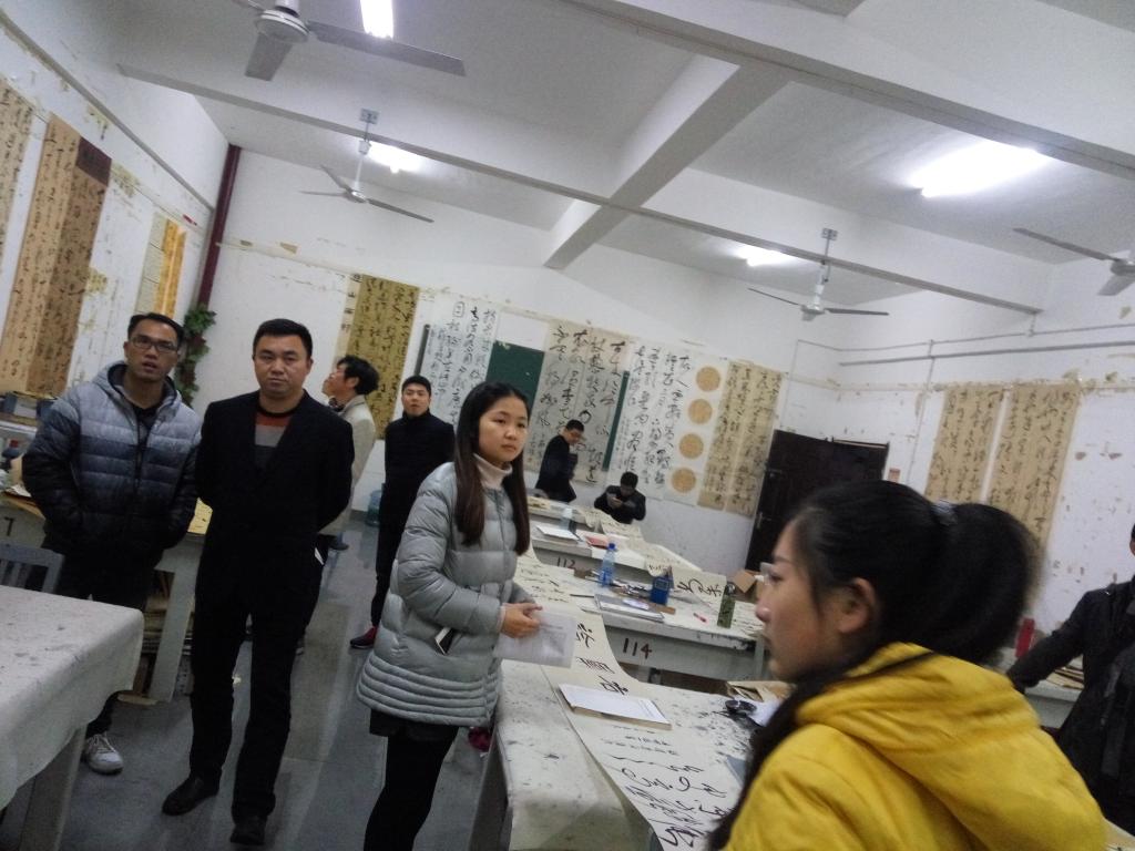 下午,在书法学教研室主任易俊的精心组织下,美术与设计学院院长邹少灵教授、副院长谢雅强副教授带领教研室全体老师开展了一场涵盖书法学三个年级,12个教学班级的阶段性书法、绘画教学成果大型点评活动。