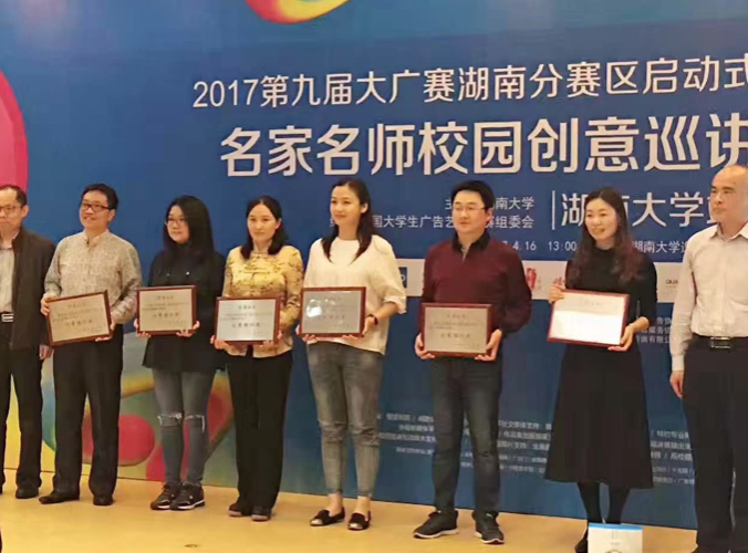 我院一共有15名师生参加了此次启动仪式,大家都觉得受益匪浅。童玲老师代表我院登台领取了“第八届全国大学生广告艺术大赛湖南赛区优秀组织奖”。(视觉传达教研室供稿)