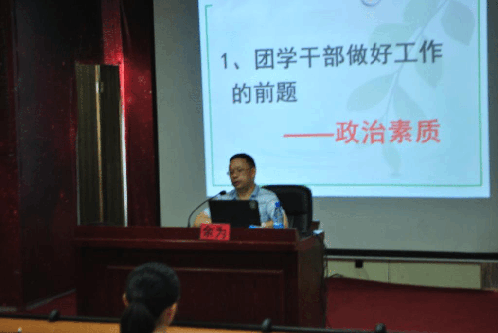 为提高我院团学干部的政治素质、纪律意识、规矩意识和工作能力,2017年5月16日晚,我院邀请学工处处长余为,在逸夫楼报告厅为团学干部做了一次集中辅导培训。出席本次培训的有我院党总支书记谢光泽、辅导员老师及团学干部。