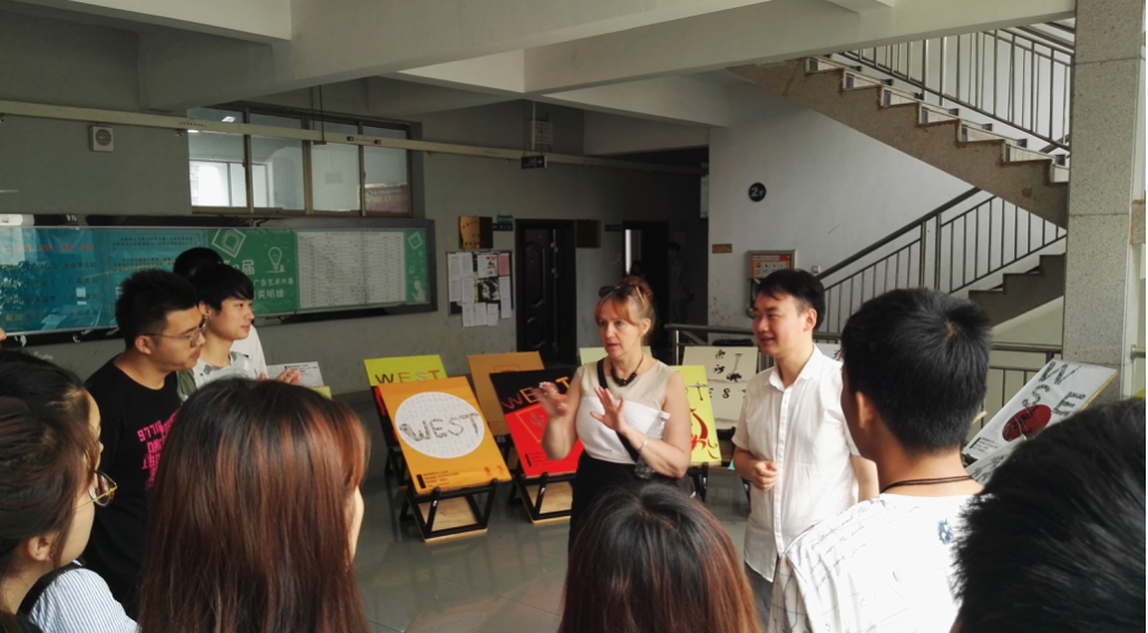 同学们活跃的招贴手法,获得了观展师生的普遍好评。欧菈莎教授对美术与设计学院的学生给予 “very good” 的评价,不仅流露出来欧菈莎教授发自内心的感叹,也是对也是同学们二十多天的密集课程和辛苦工作的最大肯定。
