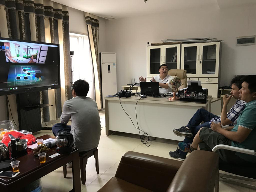 首先,娄底市蓝宇智能科技有限公司总经理、高级工程师贺争光向我院考察团全面介绍了公司的发展状况、业务领域和即将开展的具体项目,希望在数字媒体业务领域能得到我院科研与技术力量的支持。毛攀云教授详细介绍了我院数字媒体艺术专业的师资力量、硬件建设情况及专业优势和特点,表达了与娄底市蓝宇智能科技有限公司深度合作的意愿,希望与娄底市蓝宇智能科技有限公司在VR数字媒体艺术设计领域展开具体项目合作、人才培养等工作。