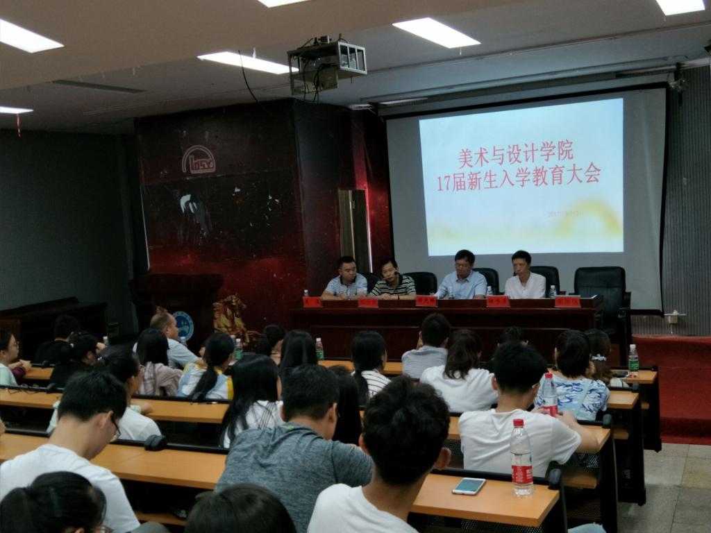 9月13日,美术与设计学院2017届新生入学教育大会在逸夫楼报告厅隆重举行。我院党总支书记谢光绎、院长邹少灵、党总支副书记易俊、副院长陆序彦、副院长谢雅强出席本次教育大会。学工办、教务办老师、专任教师代表与17级全体新生与会,会议由党总支副书记易俊主持。