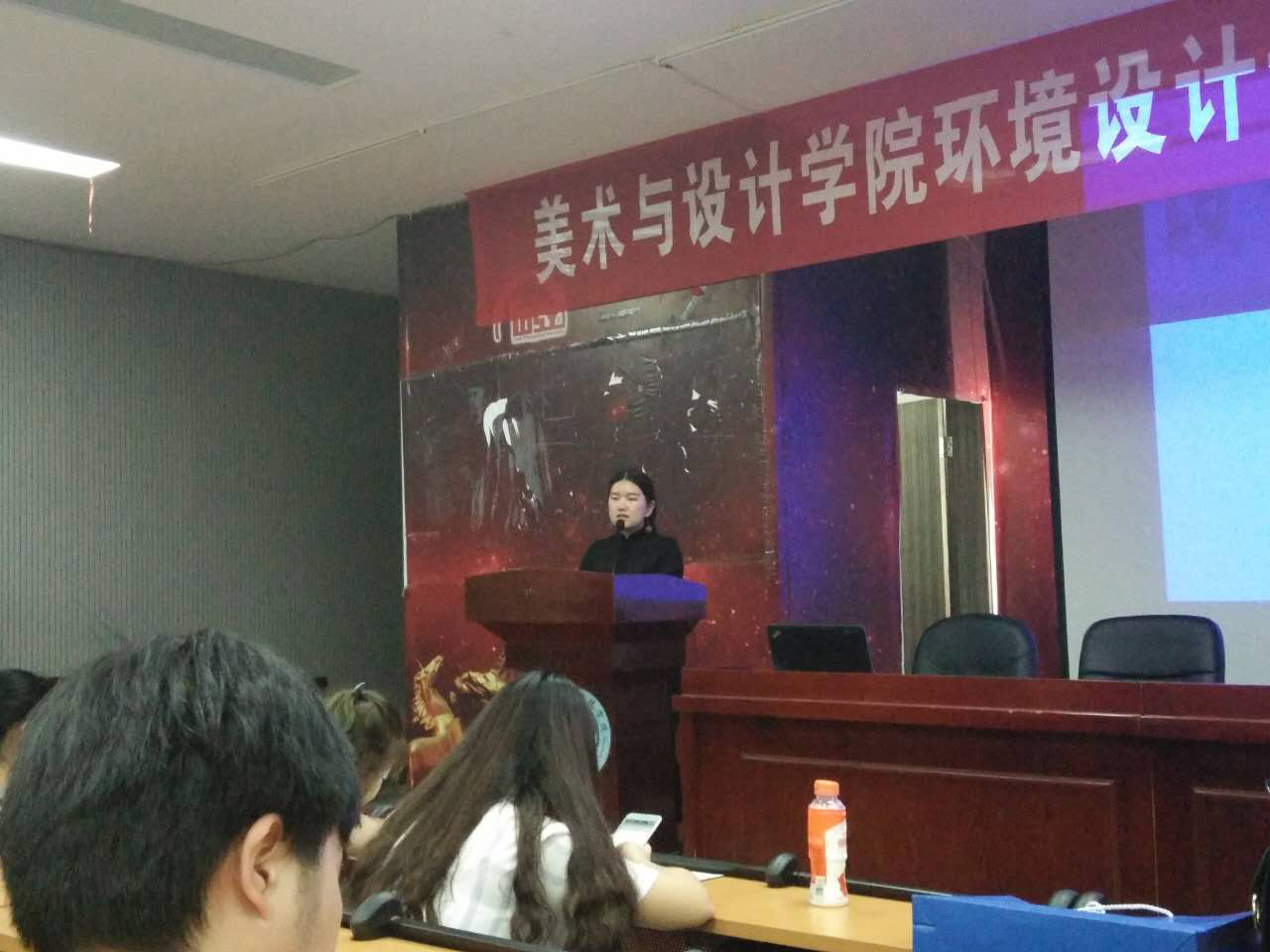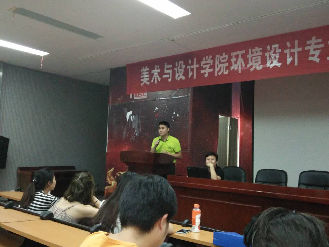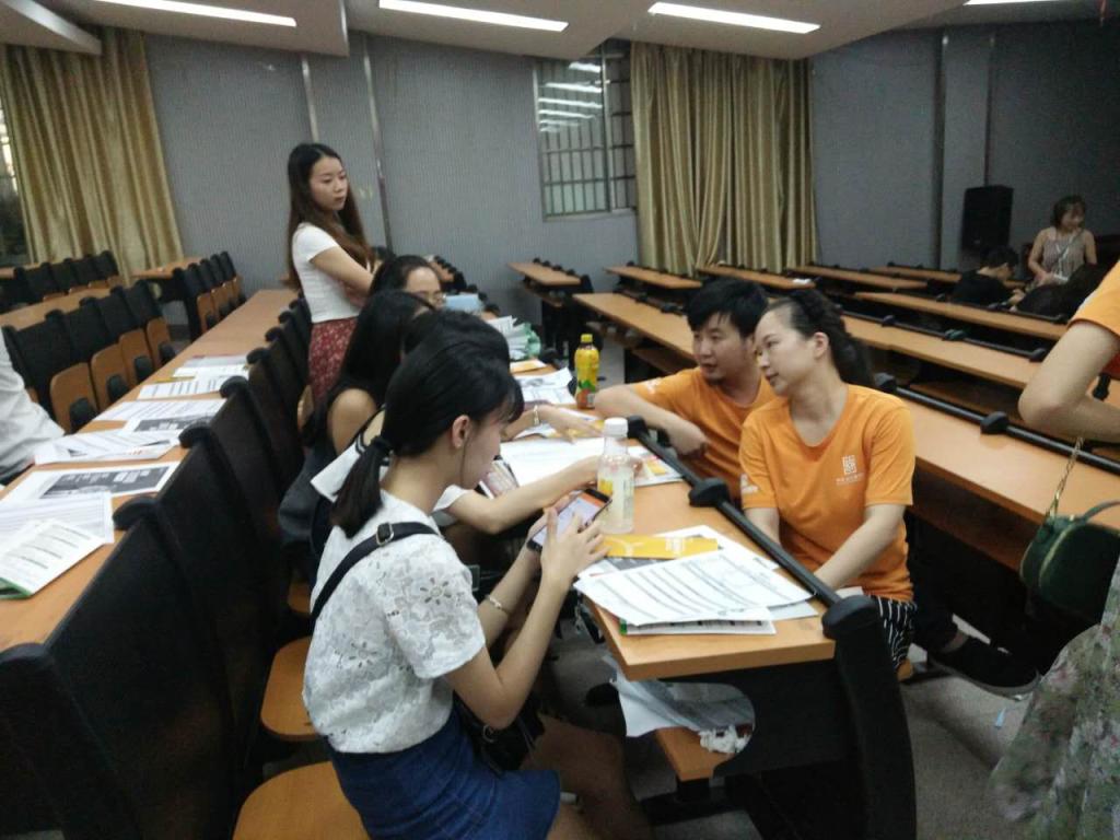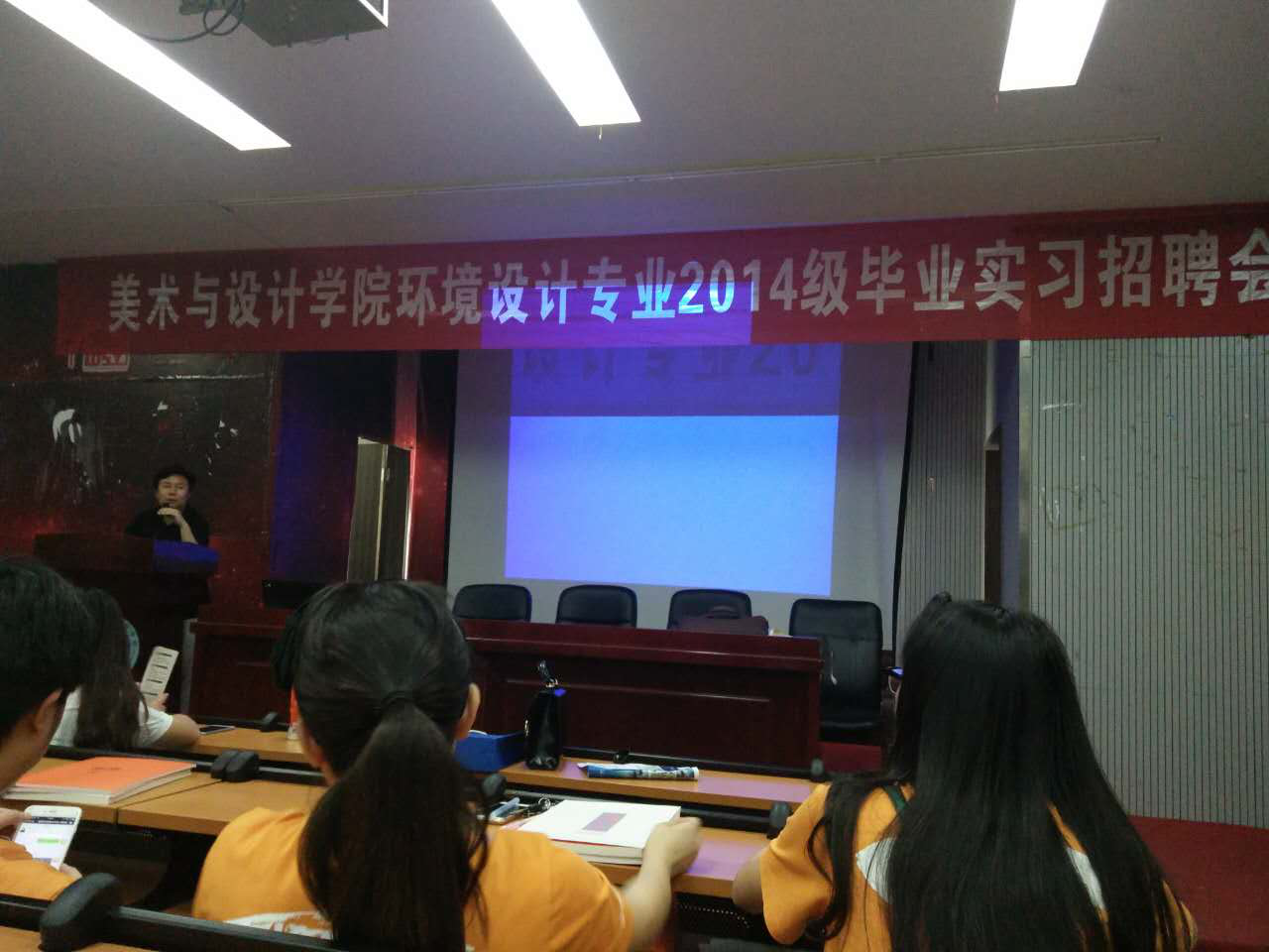 专业教师李喜群、李洁、高娜、龙选君等和教研室主任谭娟以及2014级环境设计专业100多位学生参加招聘会。
