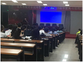 为丰富大四学生的就业渠道,便于学生更好的就业。9月15日下午3时,我院在逸夫楼报告厅举行2018届毕业生招聘会。出席会议的有14级全体班主任老师、环境设计艺术专业部分学生和我市几家装饰公司的高层管理人员。