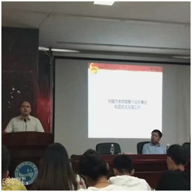 2017年9月18日晚上,“美设院团总支2017−2018学年第一次例会暨新干部见面会”在逸夫楼报告厅举行。我院党总支书记谢光绎、党总支副书记易俊、团总支书记刘国杰出席了会议,全体团总支学生干部参加了会议。会议由刘国杰老师主持。