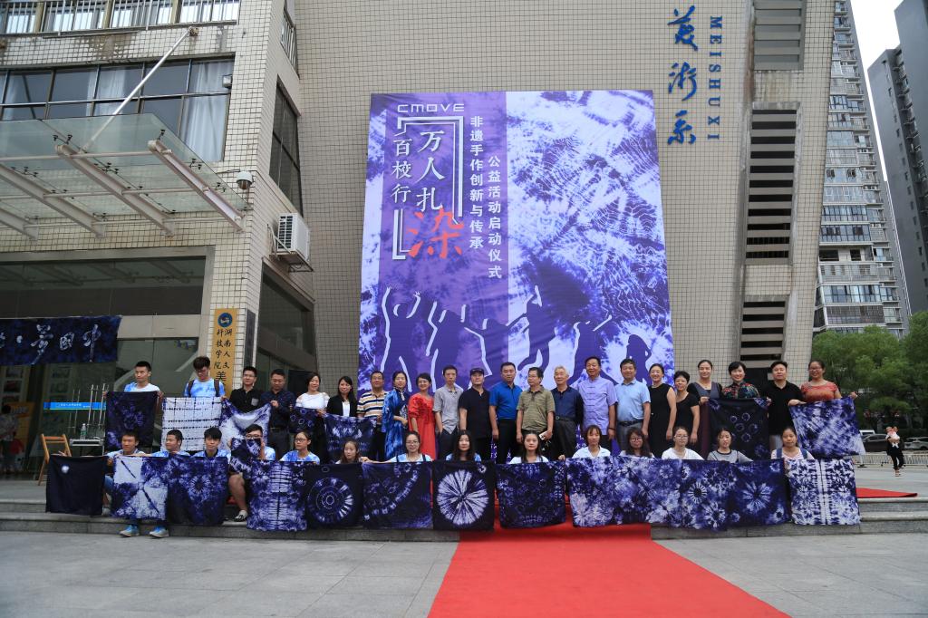 9月28日,由beat365英国官网、娄底市非物质文化遗产保护中心联合主办的“草木恋百校行•万人扎染”非遗手作创新与传承公益活动在beat365逸夫楼前坪拉开序幕。
