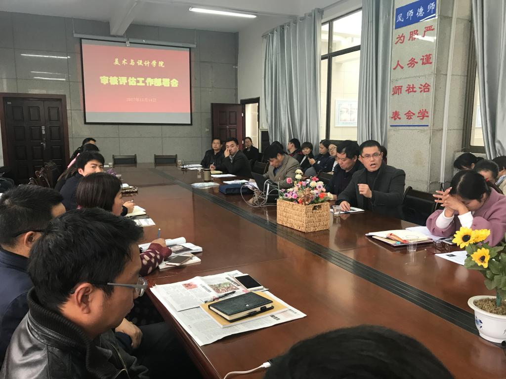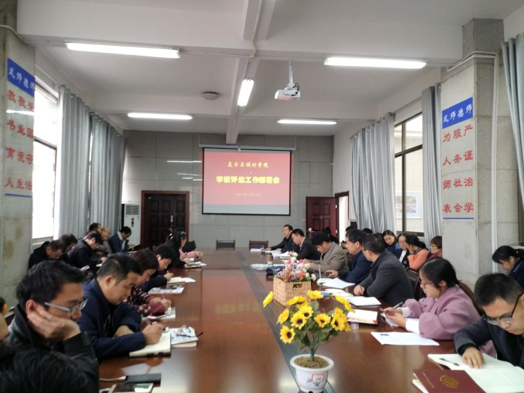 2017年11月14日下午,美术与设计学院召开迎接本科教学审核评估工作部署会议,全体教职工参加了会议。副校长周发明、质量监控与发展规划处处长陈勇及督查处等有关部门人员应邀出席会议。