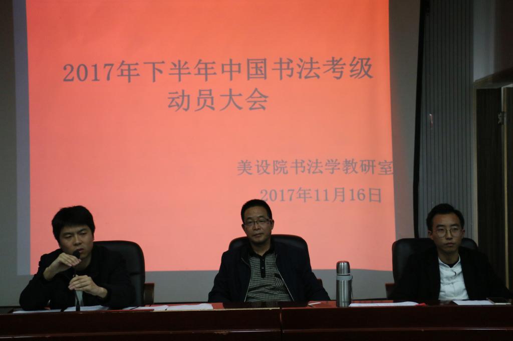 蒋全顺老师简单介绍了中国书法家协会书法考级的有关历史与现状,指出中国书法家协会主持的考级在书法考级活动中权威性,号召同学们积极参与。
