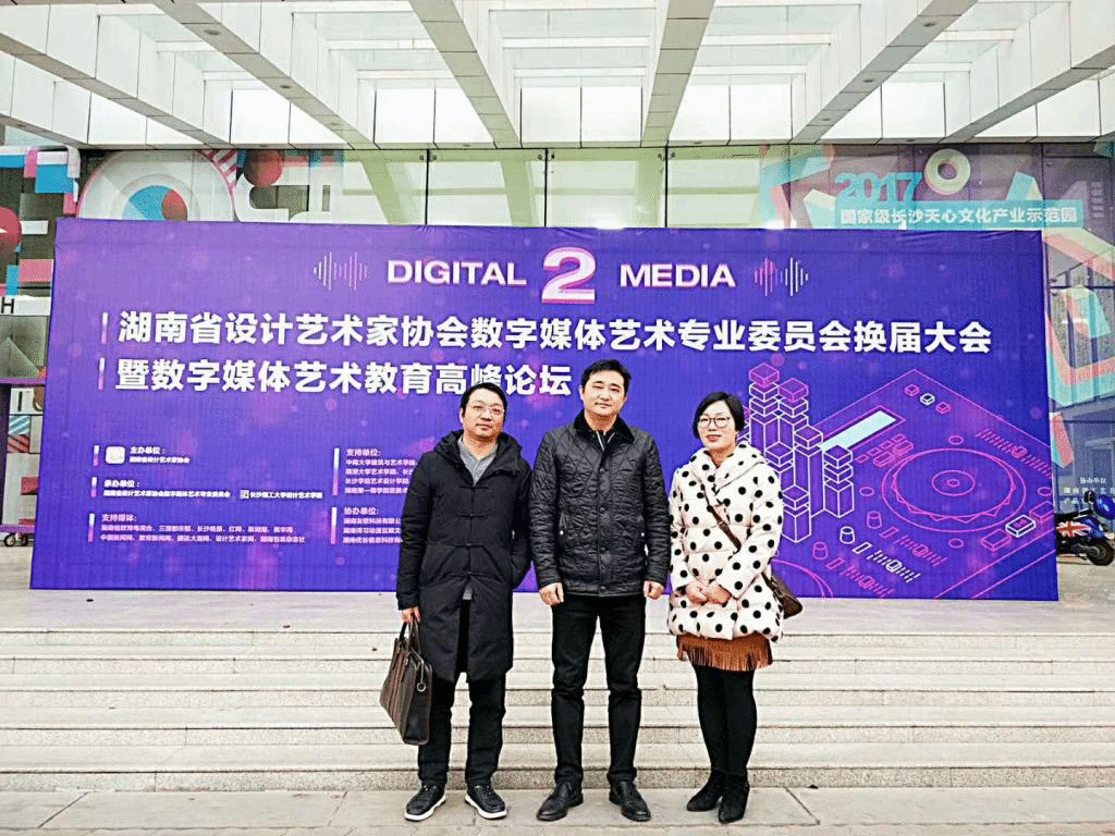 2018年1月13日,湖南省设计艺术家协会数字媒体艺术专业委员会换届大会暨数字媒体艺术教育高峰论坛在长沙理工大学举行。国内一流高校、重点企业的专家学者齐聚一堂,就数字媒体艺术教育、教学、培养等各方面议题进行学术探讨与深入交流,共商湖南省数字创业产业与数字媒体艺术教育未来发展大计。我院数字媒体艺术专业教师罗颖、吴翱参加了会议。