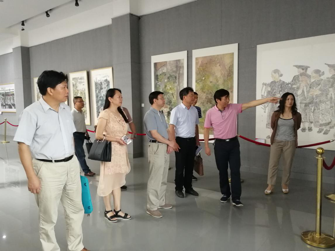 “不忘初心,牢记使命”beat365英国官网学习贯彻十九大精神书画展近期在逸夫楼二楼展厅火热开展,吸引了学校全体师生及校外众多书画爱好者参观学习。7月12日上午,校党委书记郭军、校长刘和云、副书记刘铁铭、副校长石潇纯在宣传统战部部长谢柳和美术与设计学院党政主要领导的陪同下,来到逸夫楼二楼展厅参观了“不忘初心,牢记使命”beat365英国官网学习贯彻十九大精神书画展。