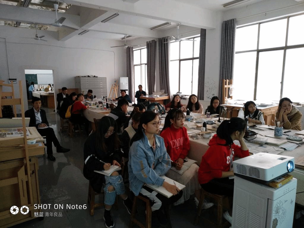 11月5日上午,彭波副教授为17级国画班同学讲授了学院本学期第一堂公开课。院领导谢光绎、陆序彦,美术学教研室曾正、书法教研室蒋全顺以及刘风雪、刘剑峰、李洁等老师参加听课。
