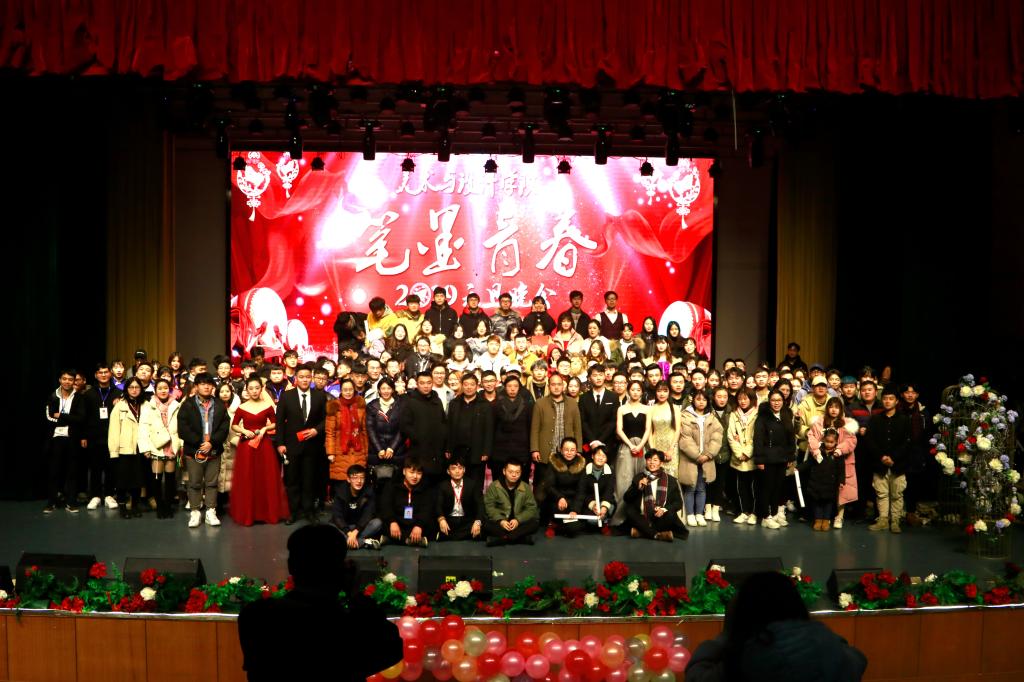 元月2日晚上,美设学院在逸夫楼音乐厅隆重举行2019年“笔墨青春”元旦晚会。学校党委委员、副校长周发明、刘铁峰,党委委员、宣传统战部部长谢柳,武装保卫处、教务处、团委、学工处、校地校企合作处、音乐与舞蹈学院等部门负责人,美术与设计学院党政领导及师生600余人出席观看了主题晚会。