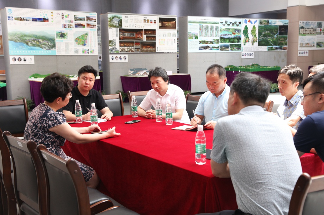 座谈会上,袁若宁对我院乡村振兴规划设计展览予以高度评价和肯定,同时提出了两个方面的建议:首先,乡村规划设计必须对接当地政府的十四五规划;对娄底市的乡村振兴规划和设计,要求设计师对必须全面熟悉娄底市现代农业十四五规划编制和娄底市乡村振兴产业规划等政策文件,全面了解娄底市空间、产业、项目布局和相关的基础建设,根据“三圈两区”定位规划、打造特色小镇及村庄。其次,规划和艺术设计一定要充分体现产业的综合效益,符合乡村振兴的本质和内涵。