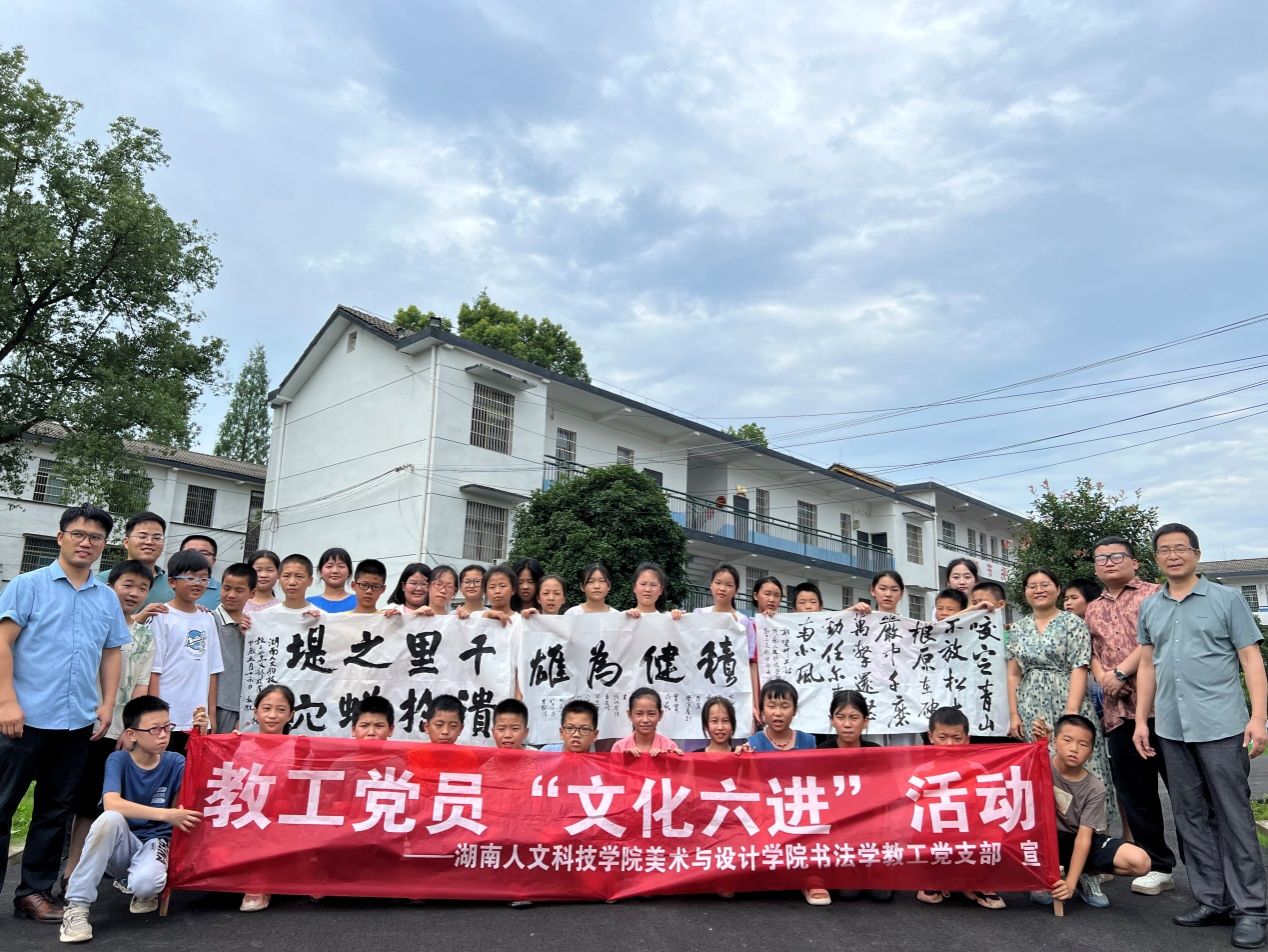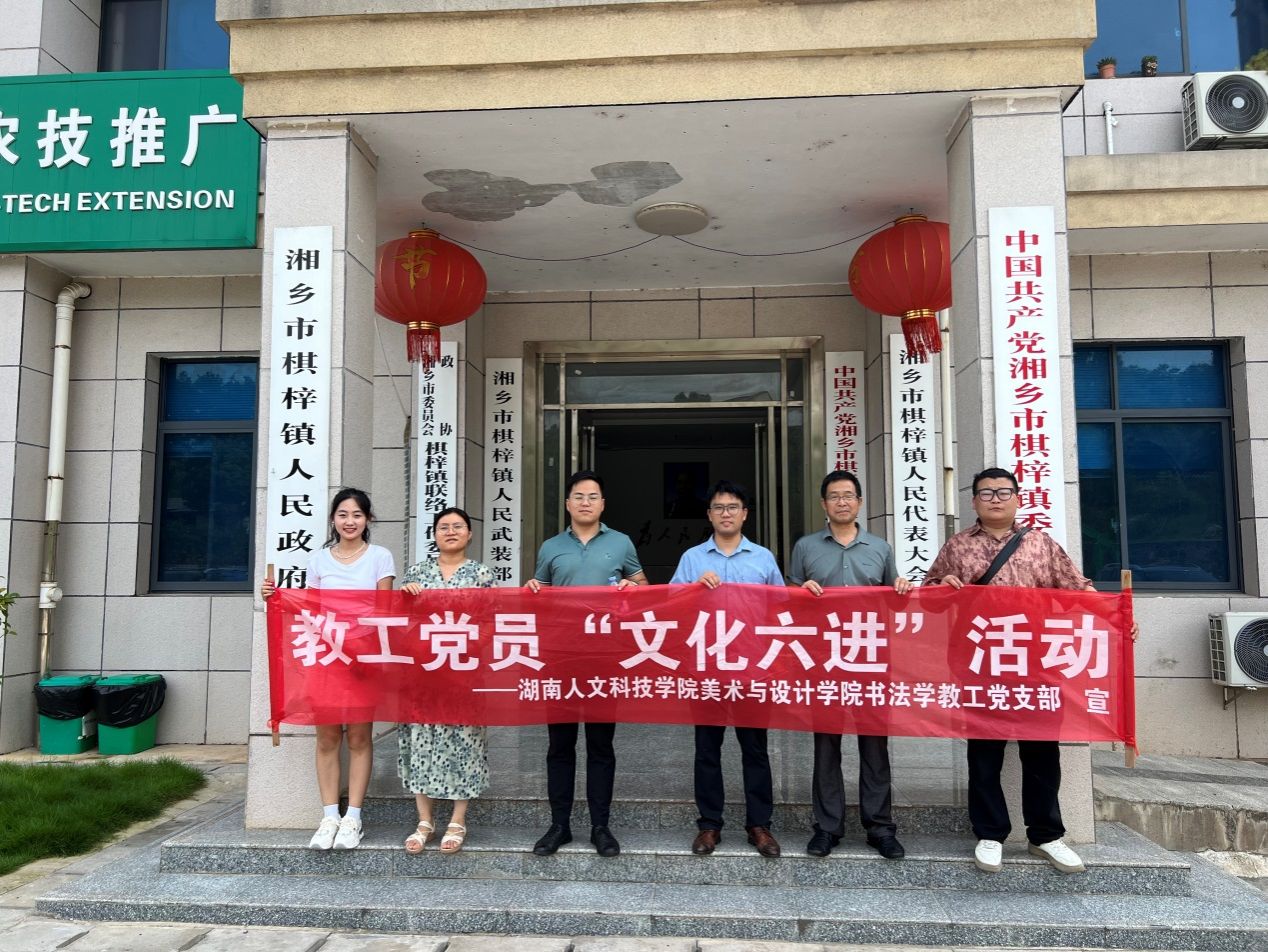 2024年6月21日,由党支部书记彭建成同志带队,beat365英国官网美术与设计学院第二教工党支部教师蒋传存、李国清、袁微,以及书法学专业两名学生入党积极分子一道,驱车一百多公里分别到湘乡市虞唐镇和棋梓镇开展“文化六进” 和党纪学习教育下基层交流学习主题党日活动。