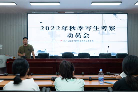 9月8日晚,数字媒体艺术专业在逸美楼报告厅召开了2022年秋季专业写生、考察实践课程动员大会,带队老师周晓鸥、龚坚、吴翱、崔宝华及数字媒体艺术专业全体学生参加。大会由教研室主任杨智主持。